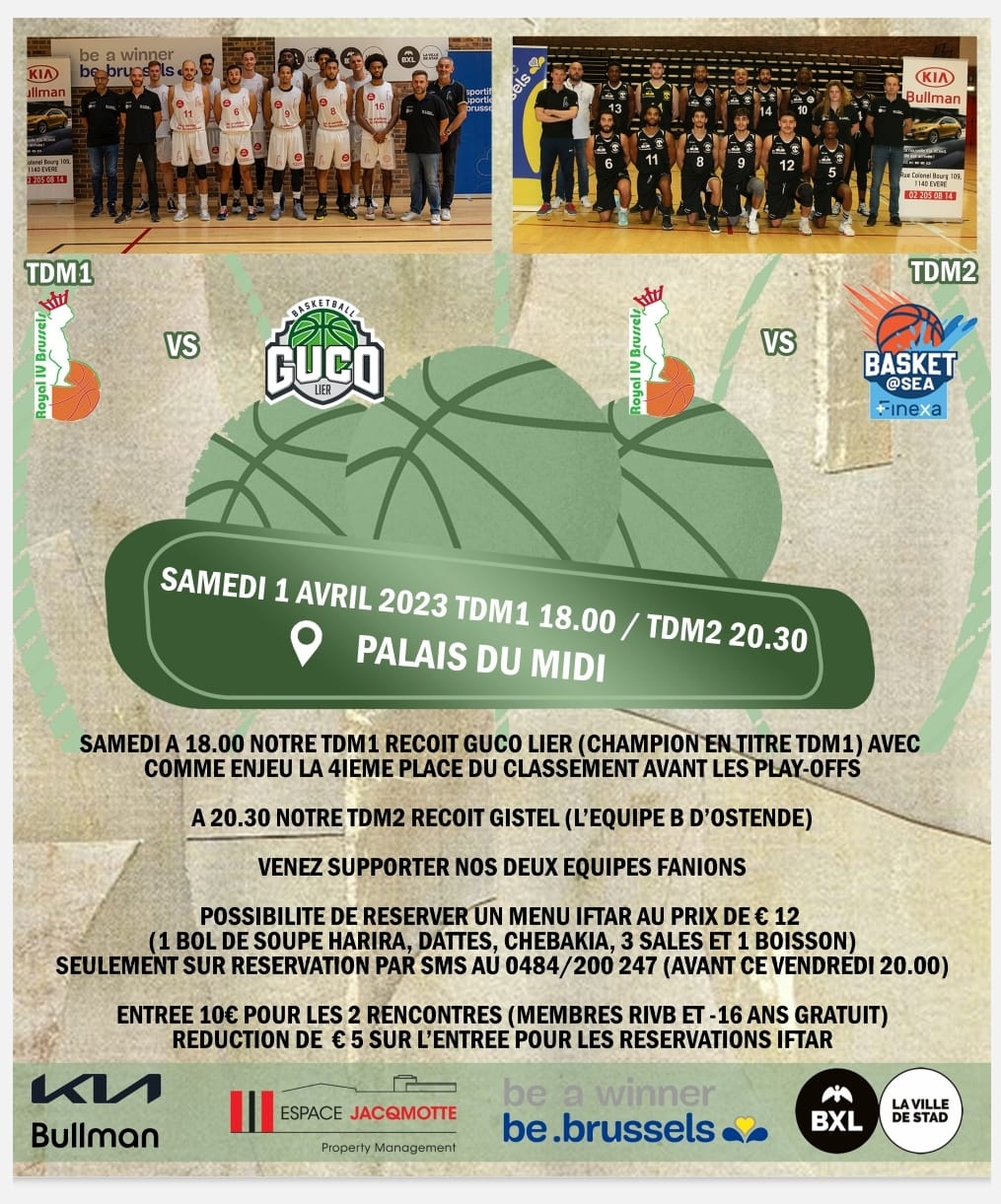 Au programme de ce weekend, coupe AWBB pour notre P1 (St-Hubert samedi à 18 heures au Palais du Midi), déplacement à Stevoort (samedi à 20 heures) en coupe de Belgique pour nos TDM1.